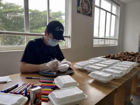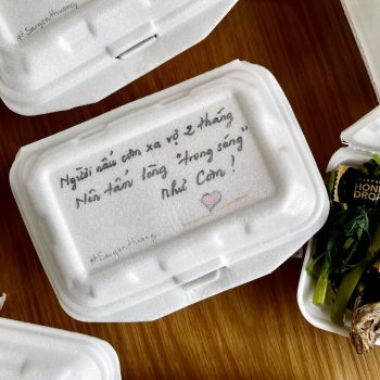 Đằng sau dòng chữ nắn nót trên hộp cơm là tình cảm, sự sẻ chia của các giảng viên Đại học Nguyễn Tất Thành với...