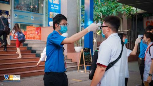 Trong ngày đầu tham gia giảng dạy, học tập trở lại, Trường ĐH Nguyễn Tất Thành đã bố trí hơn 20 máy đo thân nhiệt...