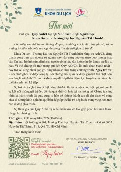 Glow Up Hospitality Challenge – Cơ hội tỏa sáng không thể bỏ lỡ! Ngày 04/03/2025 Thư viện tầng 3, trường Đại học Nguyễn Tất Thành,...
