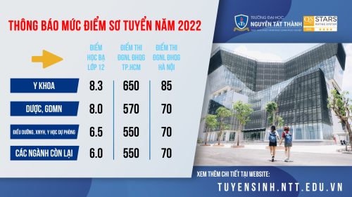 Hội đồng tuyển sinh trường Đại học Nguyễn Tất Thành thông báo mức điểm sơ tuyển của các ngành thuộc hệ Đại học chính quy...