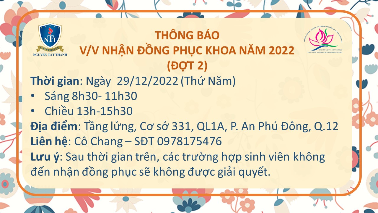 / Thông báo v/v nhận đồng phục khoa năm 2022 (đợt 2)