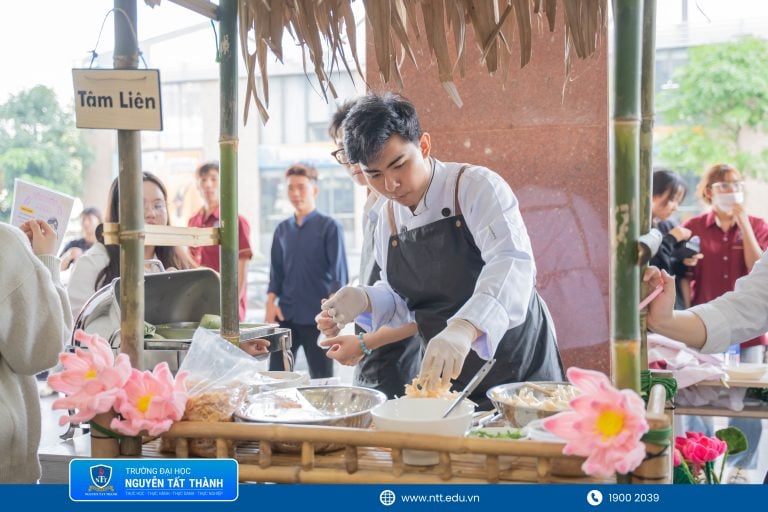 NTTU – Vừa qua, Khoa Du lịch, Trường ĐH Nguyễn Tất Thành tổ chức sự kiện “Triển lãm Ẩm thực – Hành trình Ẩm thực Bền vững 2025”, thu hút đông đảo giảng viên, sinh viên và người yêu ẩm thực tham dự. Chương trình có sự hiện diện của TS. Phan Thị Ngàn – Quyền Trưởng khoa Du lịch; ThS. Lê Tấn Thành – Phó khoa; PGS.TS Nguyễn Văn Hoàng – Giám đốc chương trình đào tạo Thạc sĩ; TS. Nguyễn Đường Giang – Giám đốc chương trình tư vấn và hỗ trợ phát triển du lịch, cùng toàn thể giảng viên và sinh viên trong khoa.