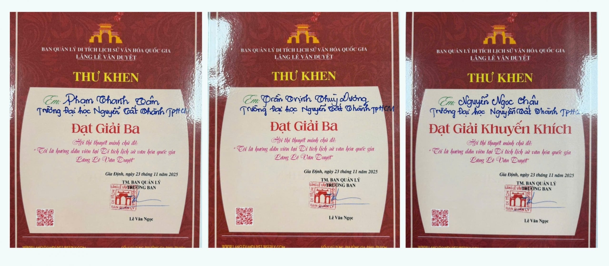 Giải thưởng tại hội thi “Tôi là hướng dẫn viên – Di tích Lịch sử Văn hóa Quốc gia Lăng Lê Văn Duyệt” không chỉ là niềm tự hào của ba sinh viên đạt giải, mà còn là động lực để thầy và trò Khoa Du lịch tiếp tục đổi mới phương pháp giảng dạy, tăng cường hoạt động thực tế và đóng góp vào việc lan tỏa tình yêu di sản trong cộng đồng trẻ. Đây cũng là minh chứng rằng sinh viên NTTU hoàn toàn có thể tỏa sáng ở những sân chơi học thuật, chuyên môn và mang đến những giá trị tích cực cho cộng đồng.