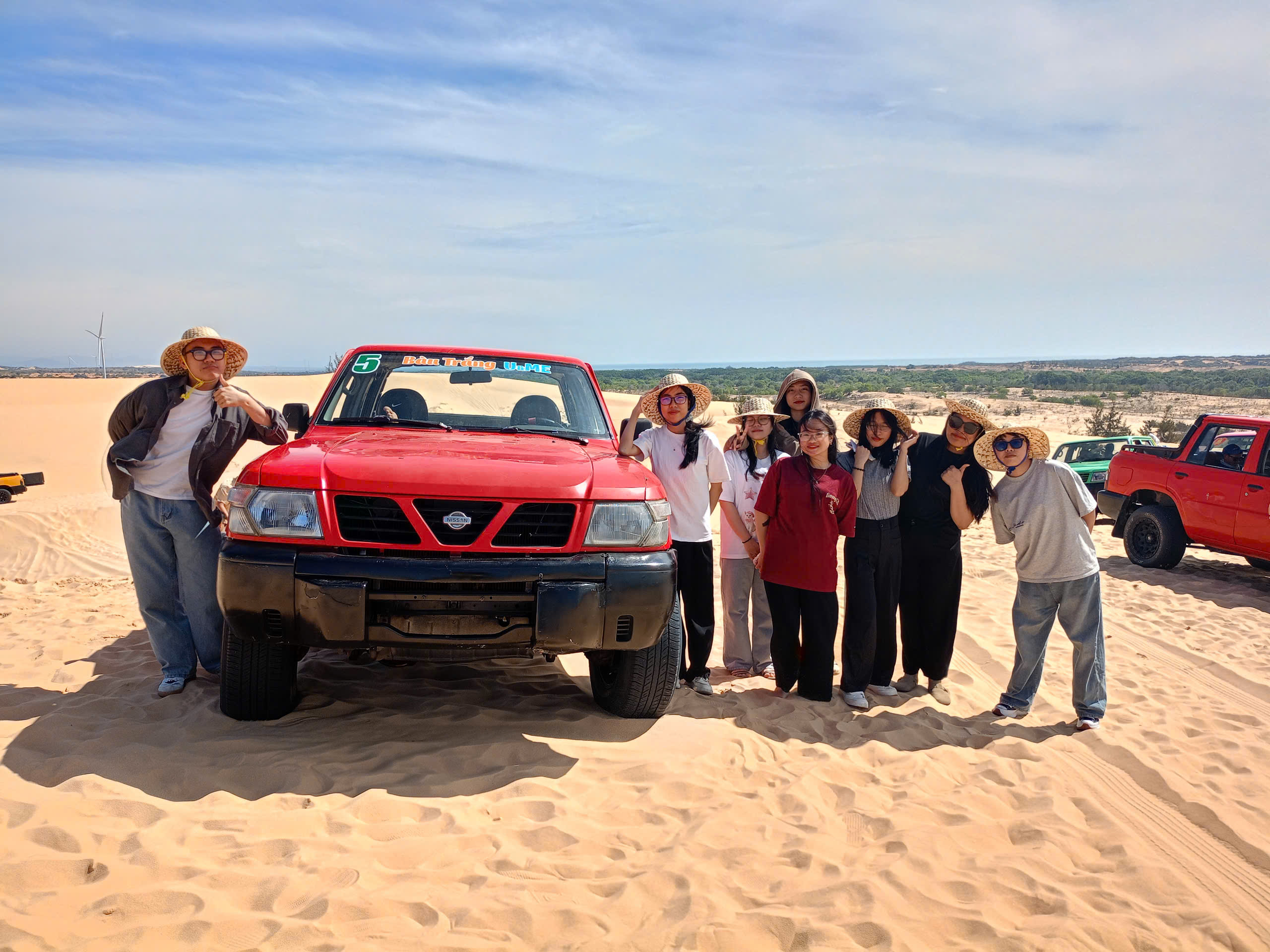 Hồ Lắk, hồ nước ngọt lớn nhất Tây Nguyên, mang đến không khí trong lành và bình yên. Những chuyến thuyền độc mộc lướt nhẹ trên mặt nước, xen lẫn hình ảnh các buôn làng người M’nông, như đưa sinh viên trở về với những giá trị mộc mạc và chân thực của vùng cao nguyên. Đồi cát Bàu Trắng (Bình Thuận) lại là một trải nghiệm hoàn toàn khác biệt. Những triền cát mênh mông hòa cùng sắc xanh của đầm sen tạo nên một bức tranh thiên nhiên đối lập nhưng đầy ấn tượng. Đây không chỉ là nơi để chiêm ngưỡng mà còn là không gian để sinh viên thử sức với những trò chơi như lái xe địa hình trên cát.