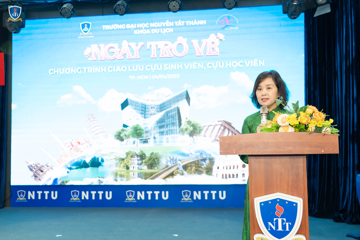 “Dù thời gian có trôi qua, dù các anh chị đã đi trên những con đường khác nhau trong cuộc sống, hôm nay chúng ta vẫn có chung một điểm tựa, đó chính là Khoa Du lịch, nơi đã chắp cánh ước mơ và ghi dấu những ký ức không thể nào quên”, TS Ngàn chia sẻ.