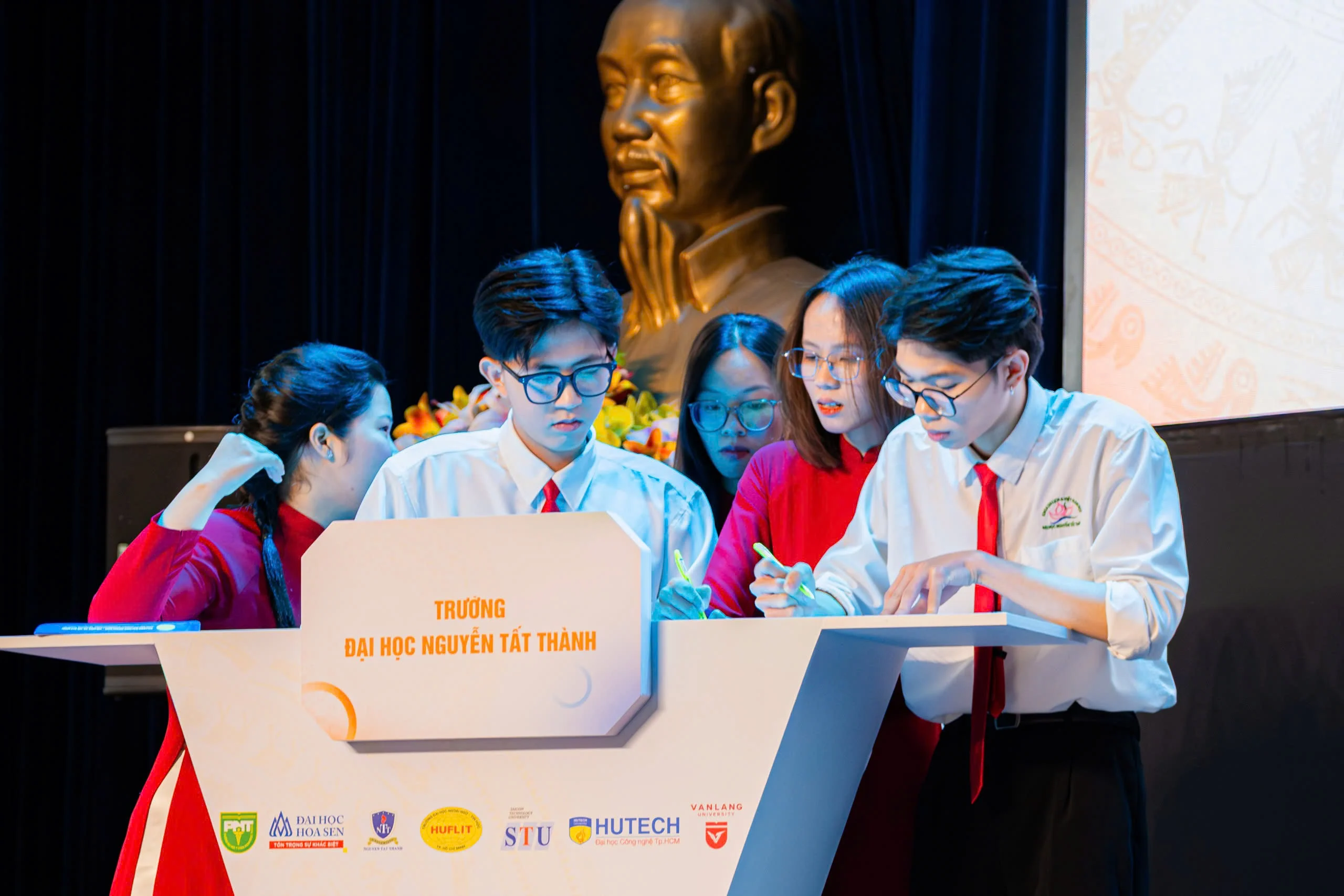 Đội thi Trường ĐH Nguyễn Tất Thành đã ghi dấu ấn nhờ phong thái chuyên nghiệp, kỹ năng trình bày thuyết phục và phản biện sắc sảo. Để có được sự thể hiện trọn vẹn trên sân khấu, cả đội đã trải qua hàng tuần chuẩn bị nghiêm túc: từ việc lựa chọn chủ đề, nghiên cứu nội dung, xây dựng luận điểm đến tập luyện kỹ năng sân khấu và biểu diễn tài năng. Quá trình ấy không chỉ giúp các thành viên hoàn thiện kỹ năng cá nhân mà còn là hành trình gắn kết, học hỏi và trưởng thành cùng nhau.