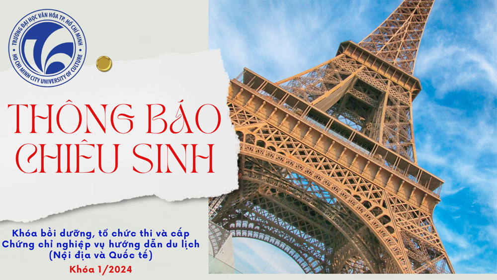 THÔNG BÁO CHIÊU SINH KHÓA BỒI DƯỠNG, TỔ CHỨC THI VÀ CẤP CHỨNG CHỈ NGHIỆP VỤ HƯỚNG DẪN DU LỊCH (NỘI ĐỊA VÀ QUỐC TẾ) KHÓA 1-2024 Xem chi tiết: tại đây