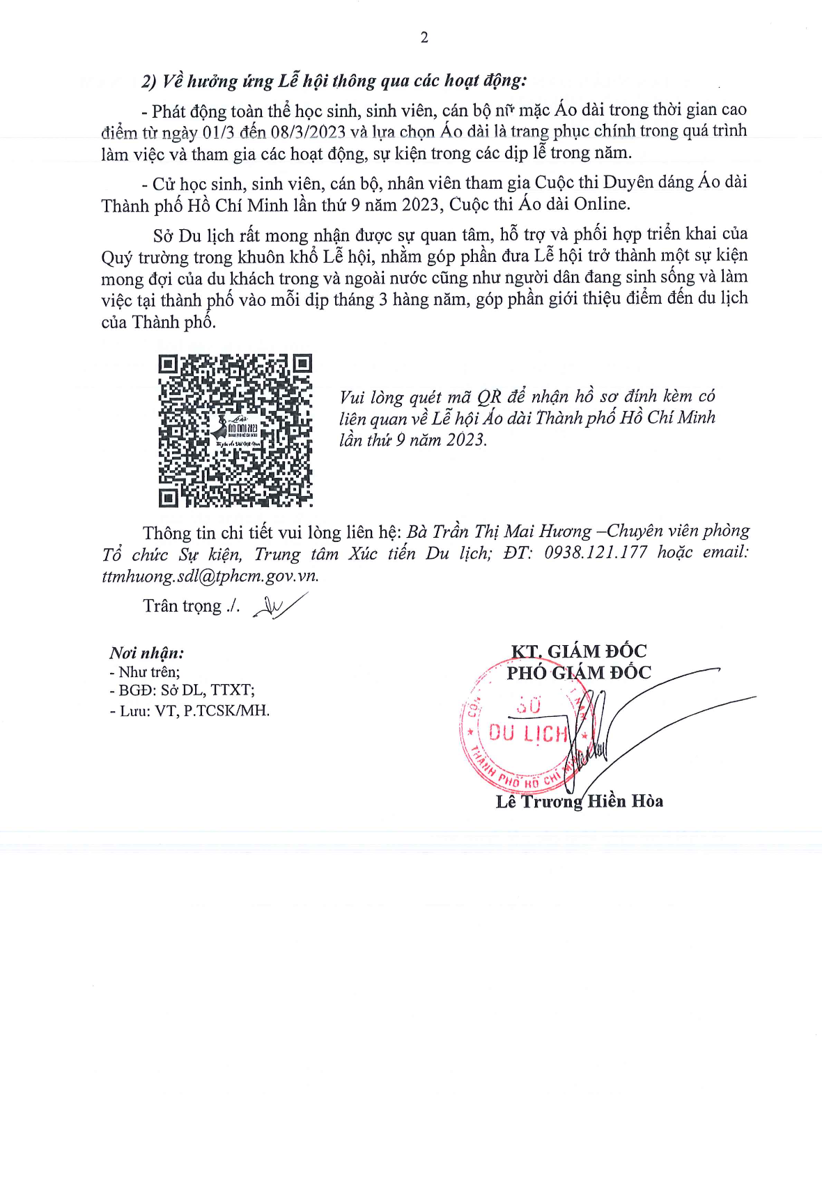 / V/v hưởng ứng Lễ hội Áo dài Thành phố Hồ Chí Minh lần thứ 9 năm 2023