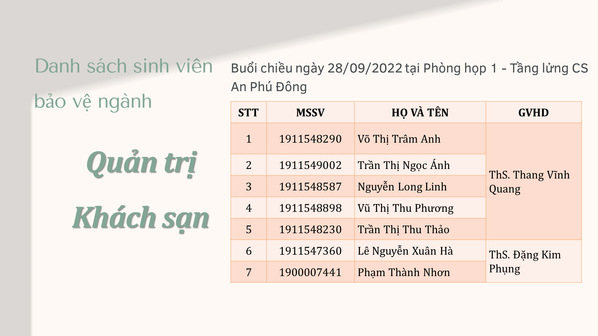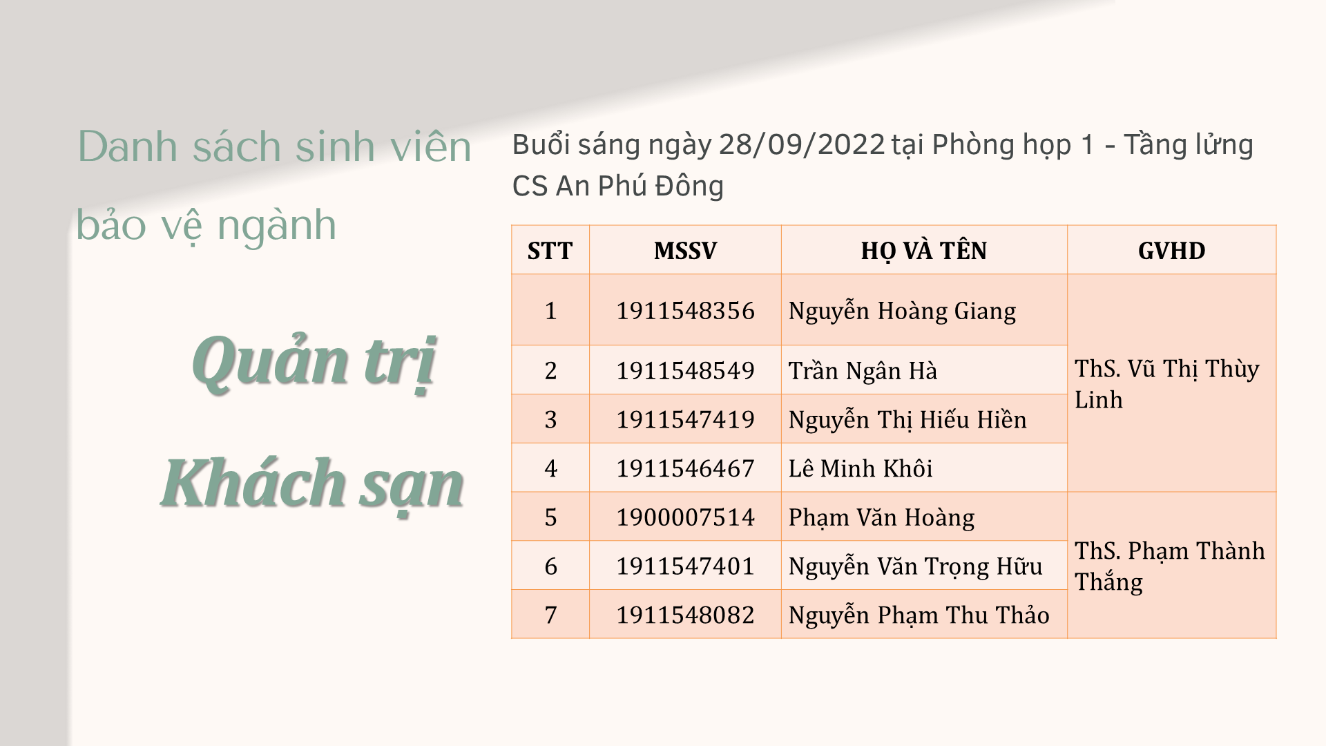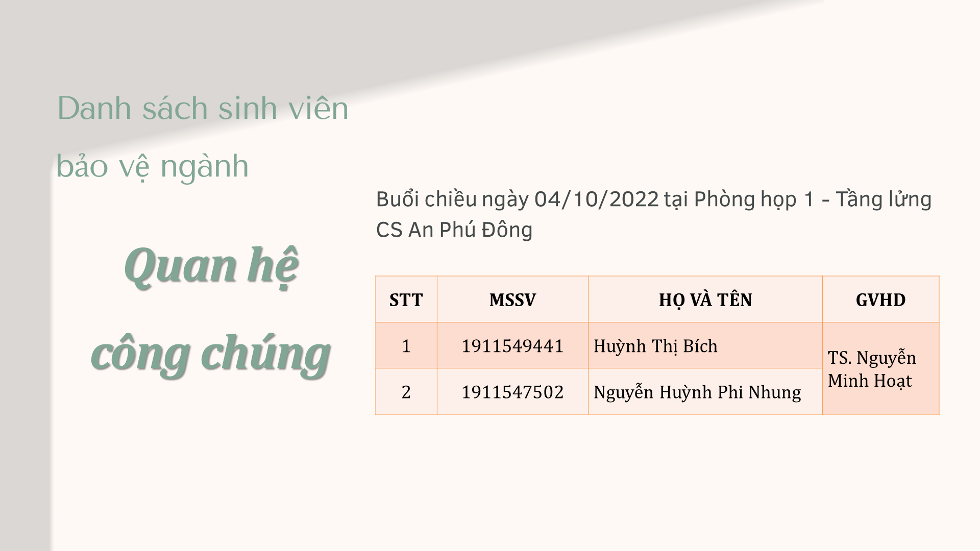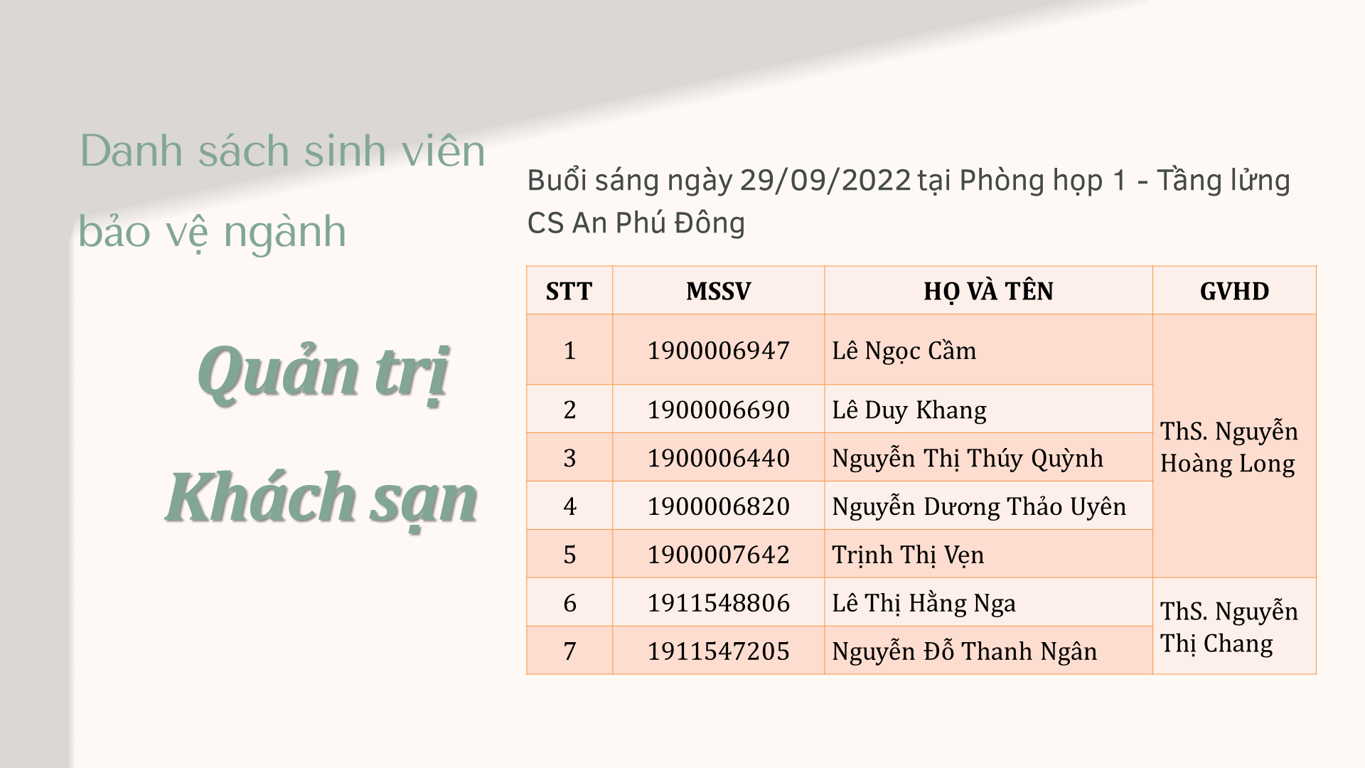 Thông báo v/v thời gian và danh sách bảo vệ KLTN khoá 2019