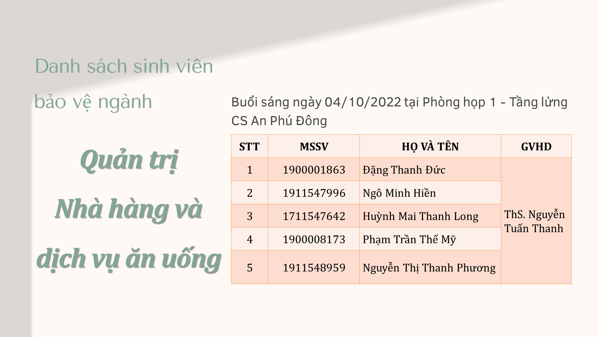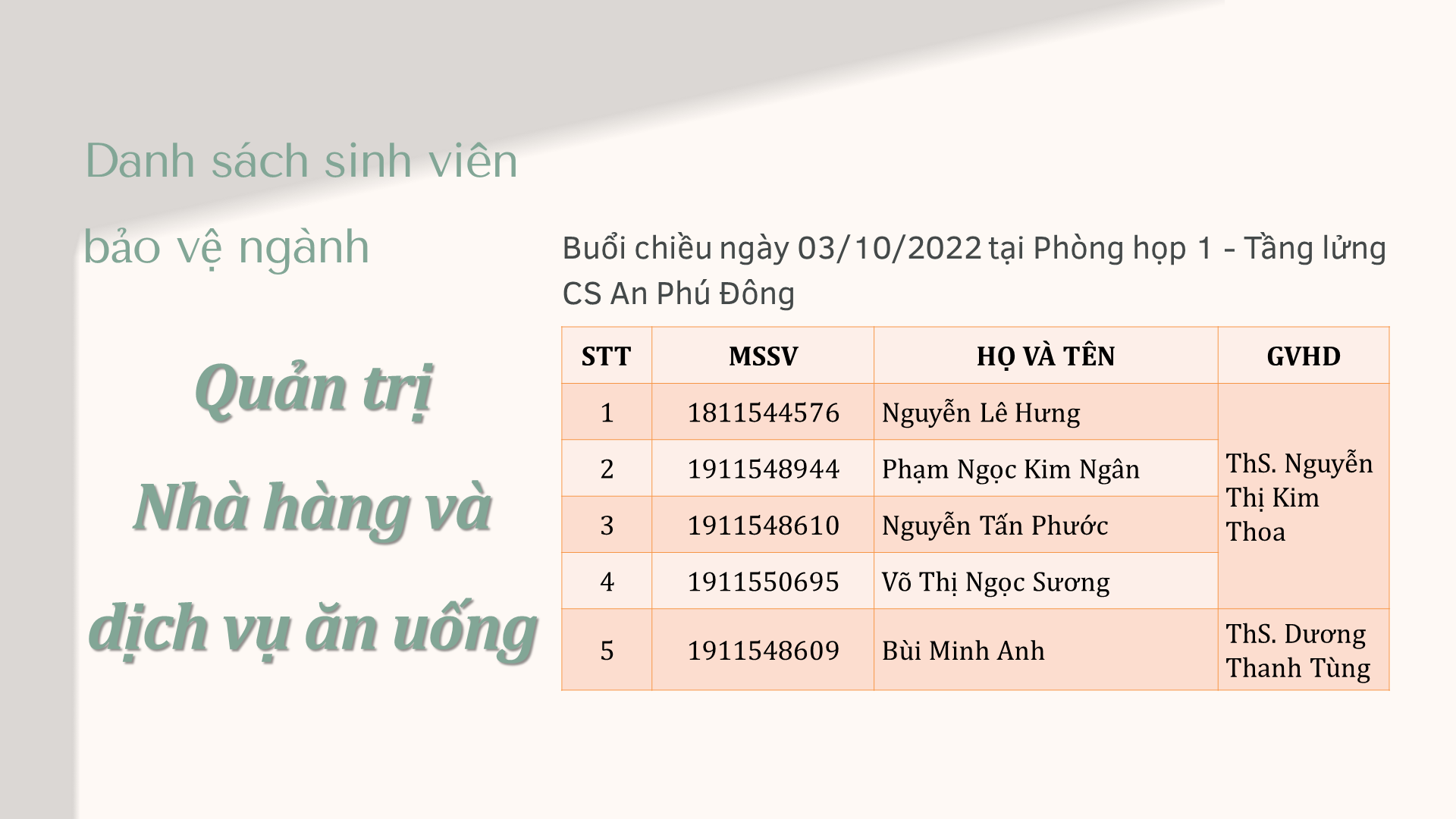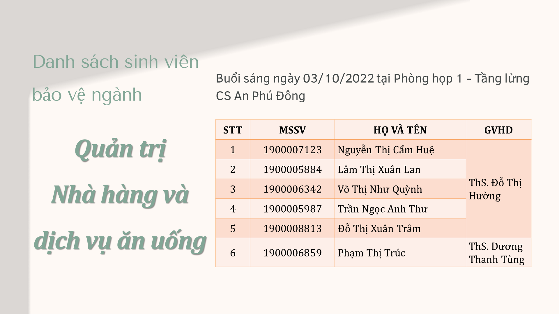 Danh sách ngành Quản trị Nhà hàng và Dịch vụ ăn uống: