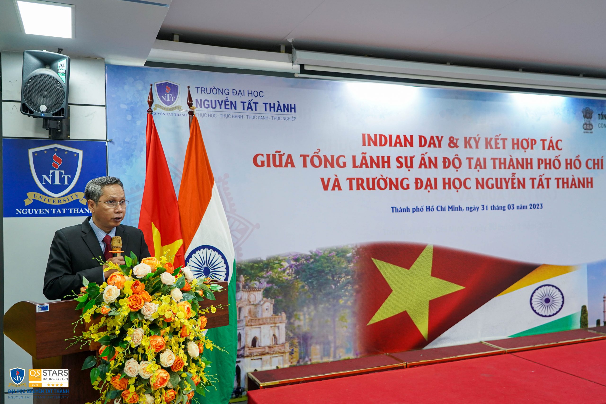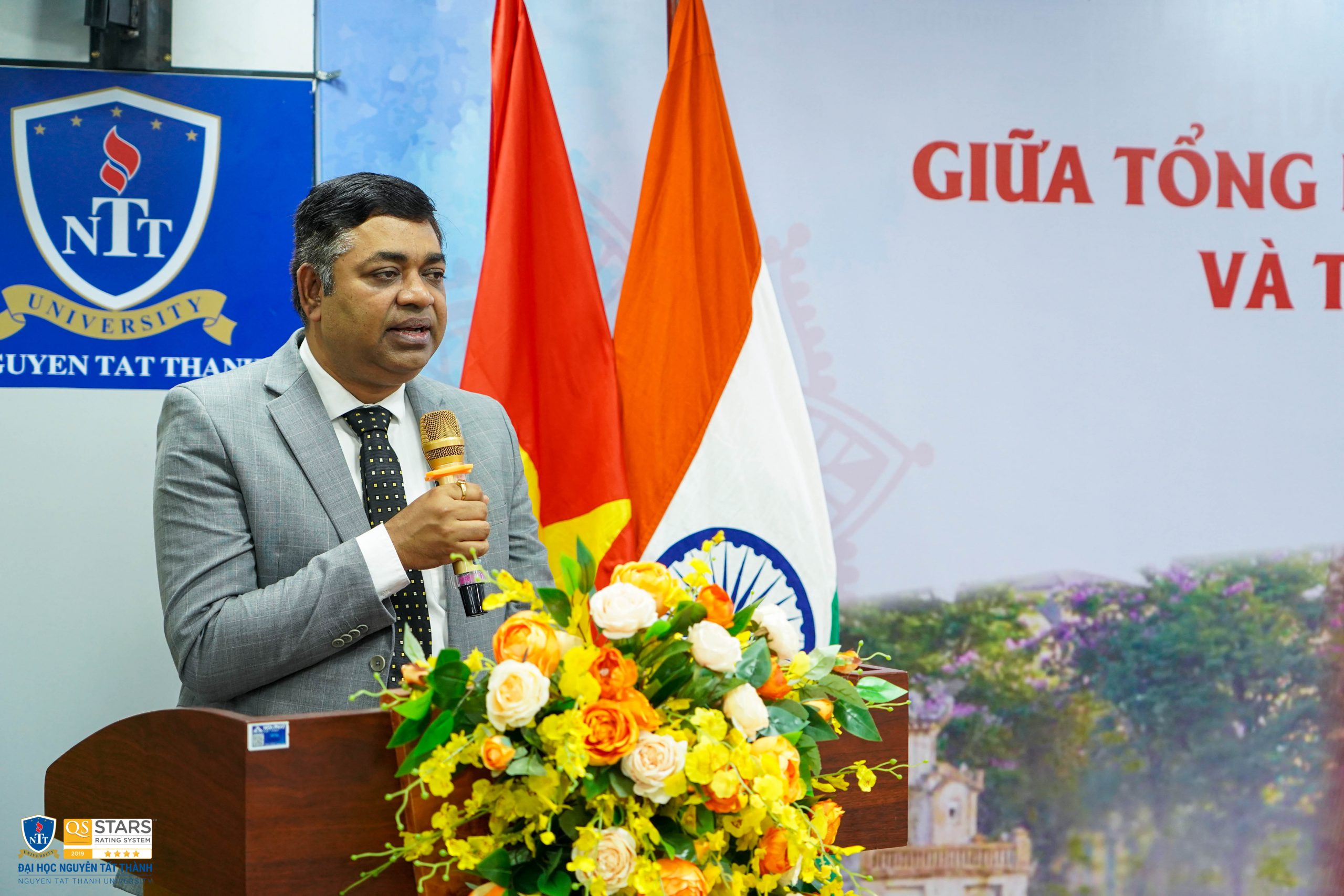TS. Madan Mohan Sethi, Tổng Lãnh sự Ấn Độ tại TP HCM gửi lời cảm ơn đến Trường ĐH Nguyễn Tất Thành và khẳng định mối quan hệ hợp tác bền vững giữa Việt Nam và Ấn Độ