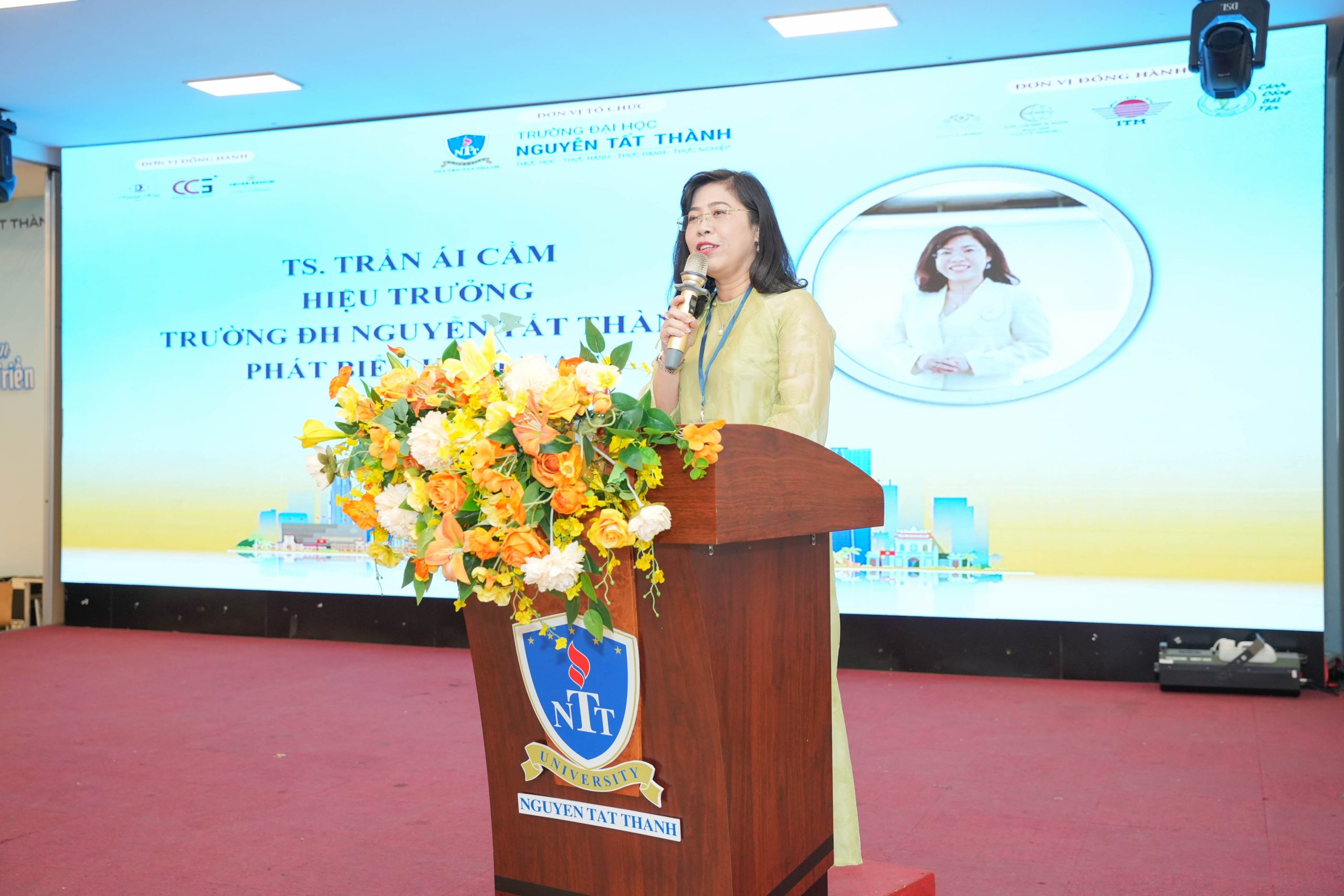 TS. Trần Ái Cầm – Hiệu trưởng Trường Đại học Nguyễn Tất Thành phát biểu tại Hội thảo.