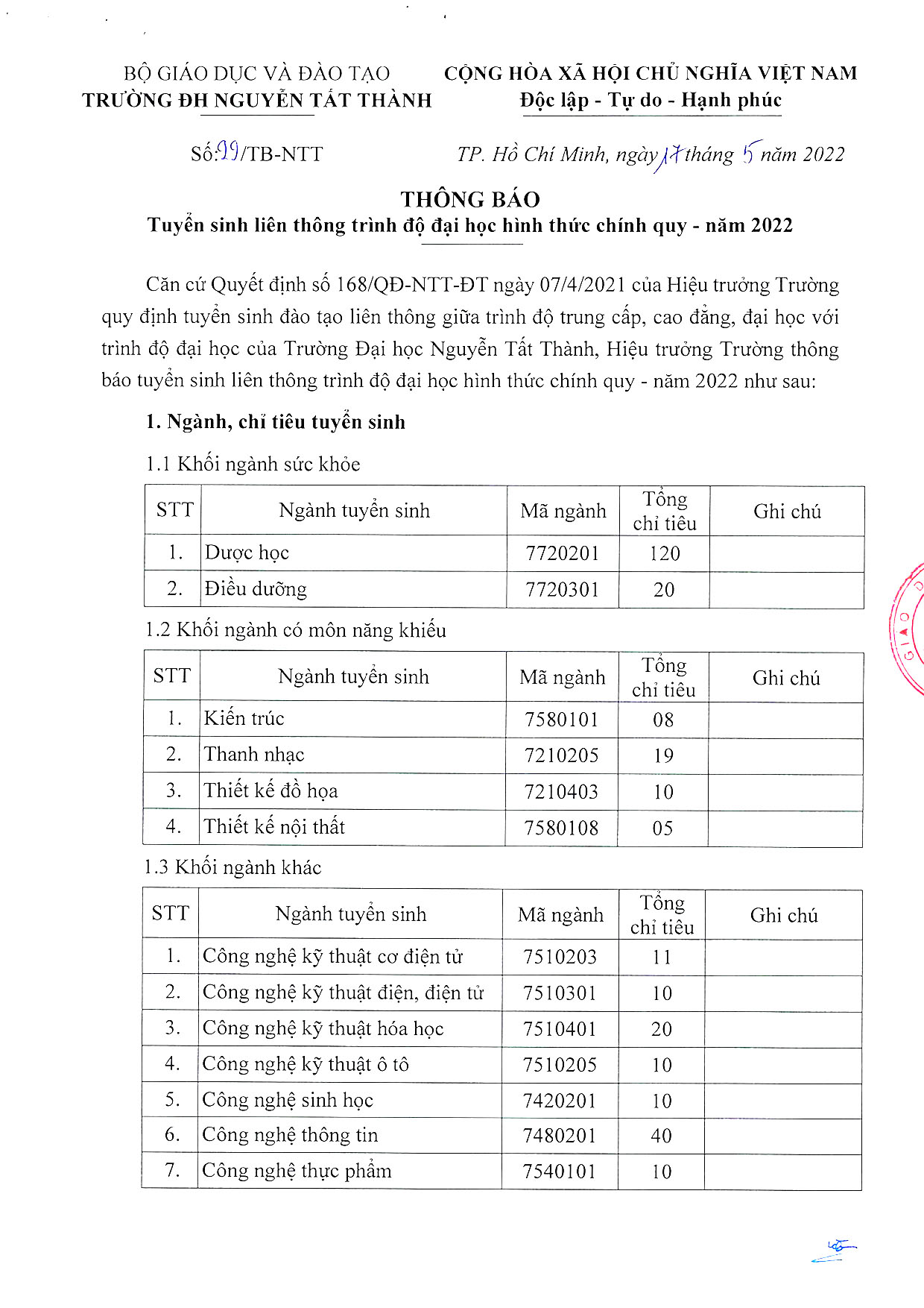 / Thông báo tuyển sinh liên thông trình độ đại học hình thức chính quy – Năm 2022