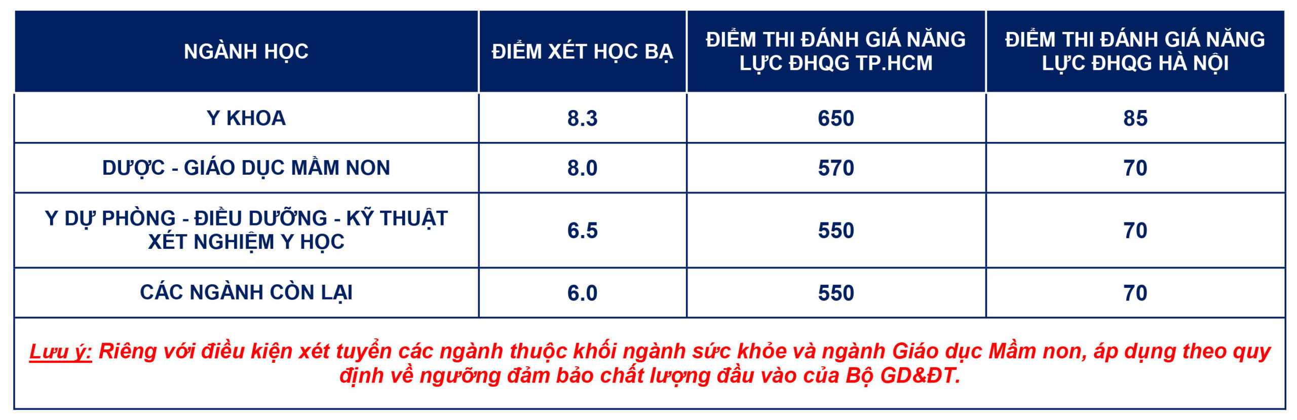 Hội đồng tuyển sinh trường Đại học Nguyễn Tất Thành thông báo mức điểm sơ tuyển của các ngành thuộc hệ Đại học chính quy năm 2022. Kết quả lần lượt thể hiện Điểm học bạ – Điểm thi Đánh giá năng lực ĐH QG TP.HCM – Điểm thi Đánh giá năng lực ĐH QG HÀ NỘI, cụ thể như sau: